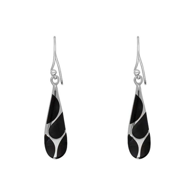 • Sterling Silver Whitby Jet Four Stone Slim Tear Drop Earrings - E594 (00074395)