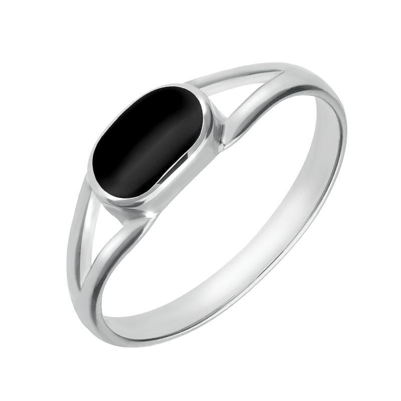 Sterling Silver Whitby Jet Heritage Oval Split Shank Ring, R025.