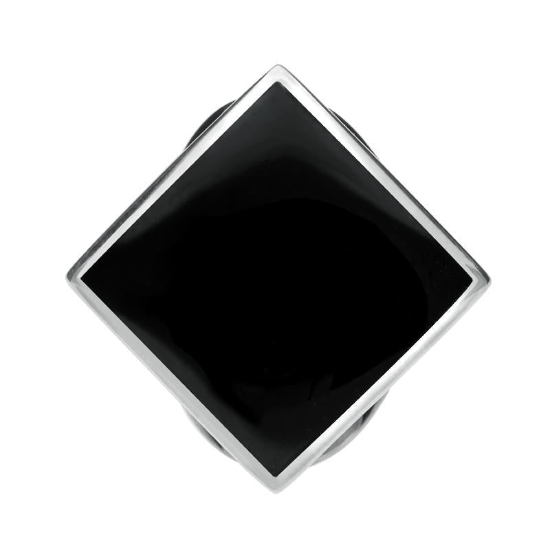 This medium rhombus Whitby Jet Sterling Silver ring has been cut and handcrafted by our skilled jewellery craftsmen, to reveal the natural beauty of the Whitby Jet gemstone in a fashionable and stylish design. A beautifully simple and classic ring, perfect for any occasion.