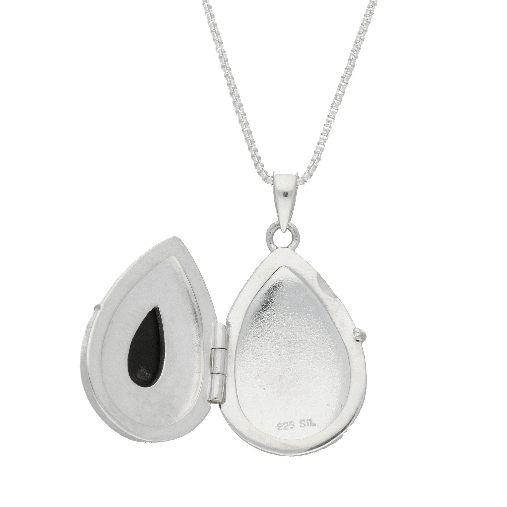 Sterling Silver Whitby Jet Pear Patterned Locket Necklace