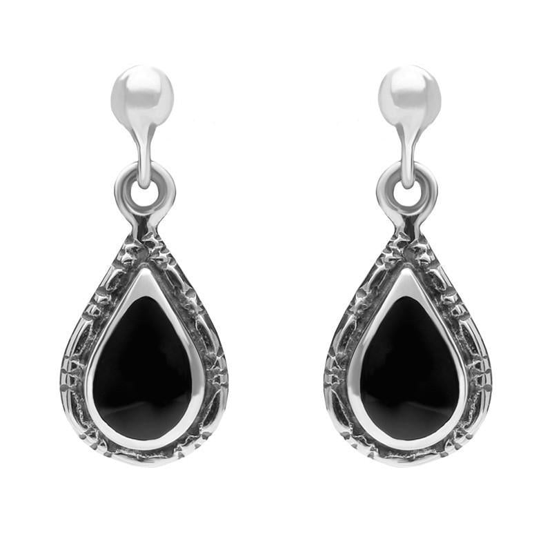 • Sterling Silver Whitby Jet Small Pear Drop Earrings - E142 (00073969)