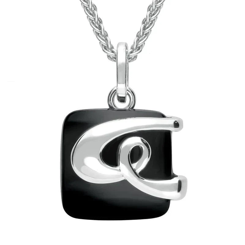 Sterling Silver Whitby Jet Square Knot Necklace. P2605.