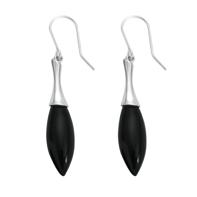 Sterling Silver Whitby Jet Tapered Drop Earrings