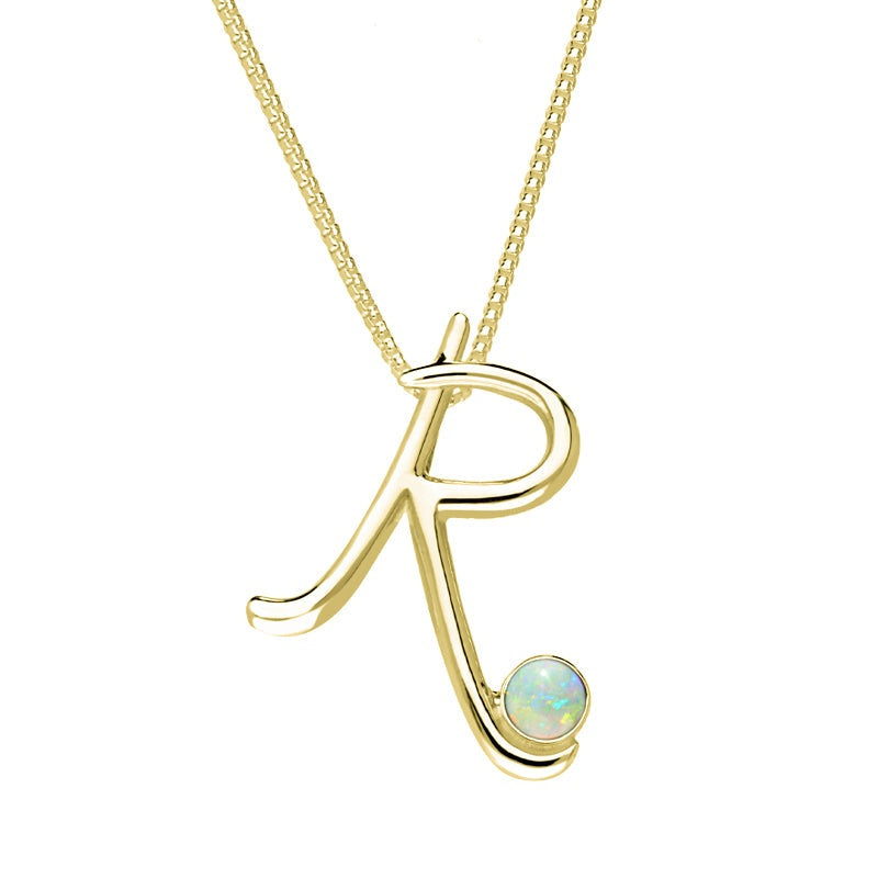 18ct Yellow Gold Opal Love Letters Initial R Necklace, P3465.