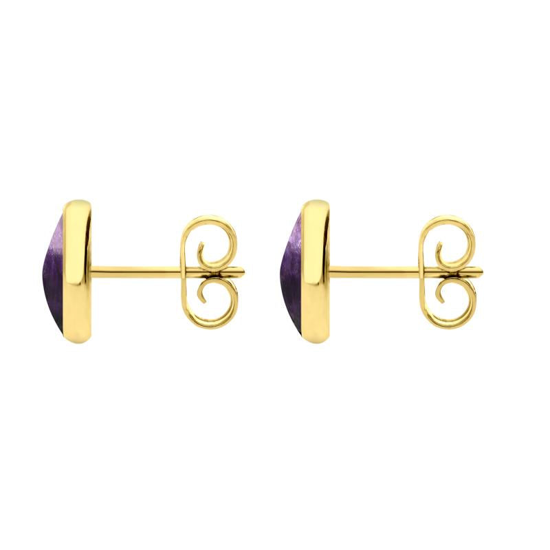 9ct Yellow Gold Blue John 8mm Classic Large Round Stud Earrings, E004.