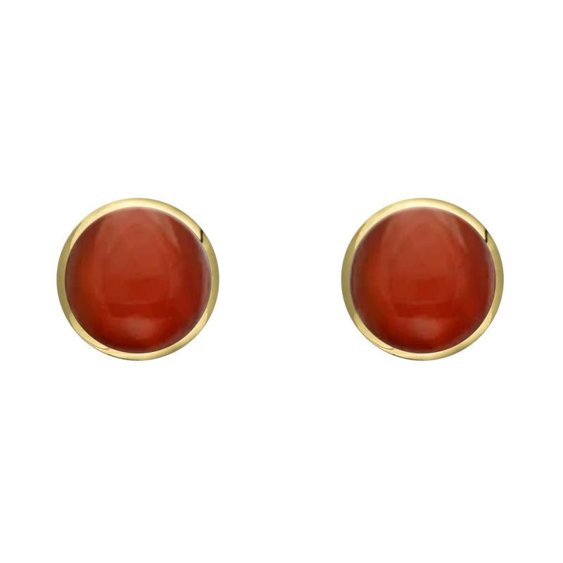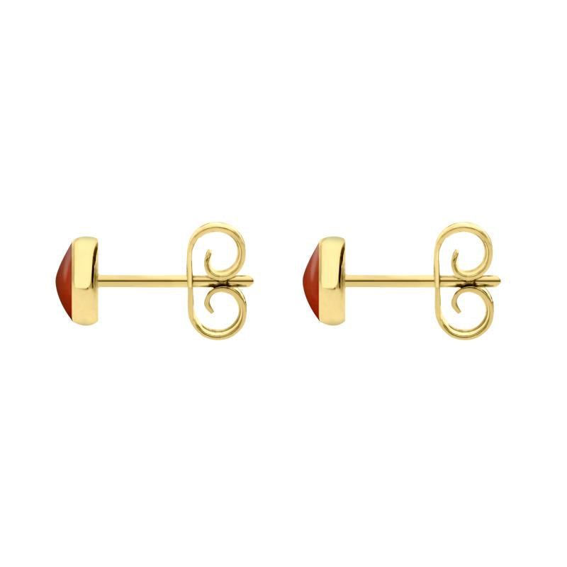 Whitby Jet Store 9ct Yellow Gold Carnelian 5mm Classic Small Round Stud Earrings, E002.
