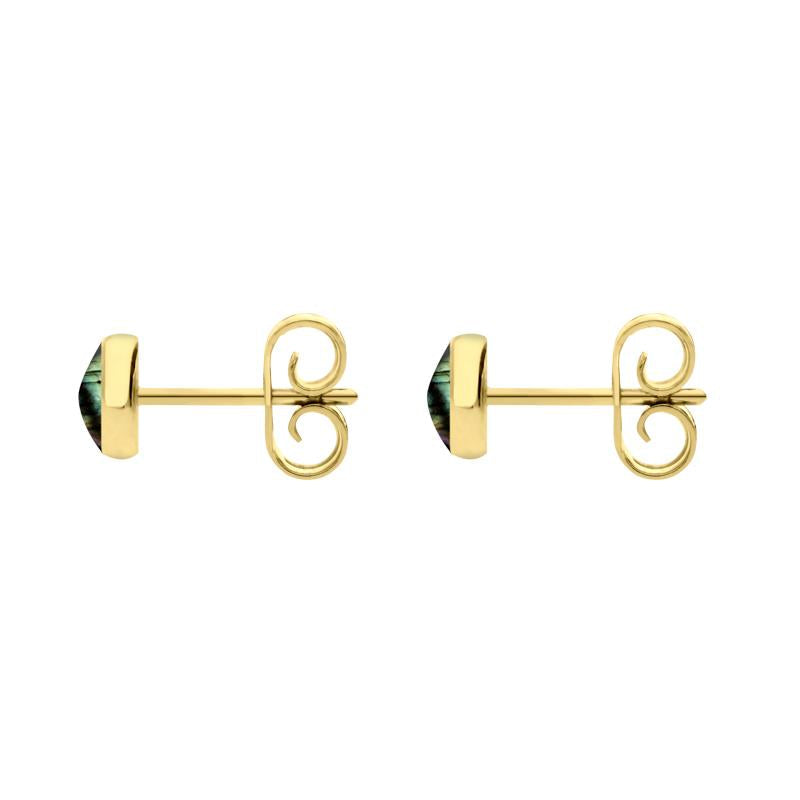 Whitby Jet Store 9ct Yellow Gold Spectrolite 5mm Classic Small Round Stud Earrings, E002.