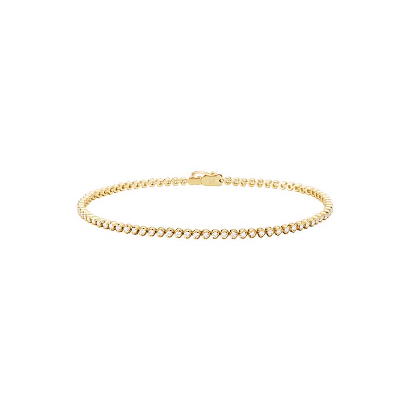The slim edition of Georg Jensen's striking tennis bracelet in solid 18kt yellow gold is an expertly crafted piece of jewellery that does not go unnoticed. Embodying the house's relentless commitment to innovation in design, the piece features a signature diamond setting that enhances and maximises its brilliance. Each differently-sized diamond is carefully hand-set in a natural and non-linear way, referencing one of Georg Jensen's greatest sources of inspiration: nature. Crafted to be treasured and passed down through generations, this bracelet is a true piece of craft.
