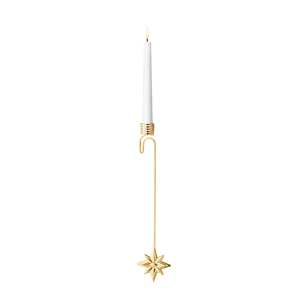 This festive candleholder, a part of the 2024 Christmas Collectibles series, is the design of long-time Georg Jensen collaborator Sanne Lund Traberg. Created to perch upon the branch of a Christmas tree, the base of the candle sits within a snug, gold-plated ring that is balanced by a star-shaped ornament that hangs beneath.
