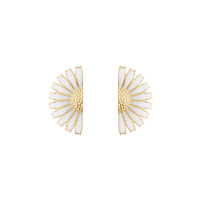 • Georg Jensen Daisy 18ct Yellow Gold Plated Sterling Silver White Enamel Earrings - 20001551 (GGN-1742)