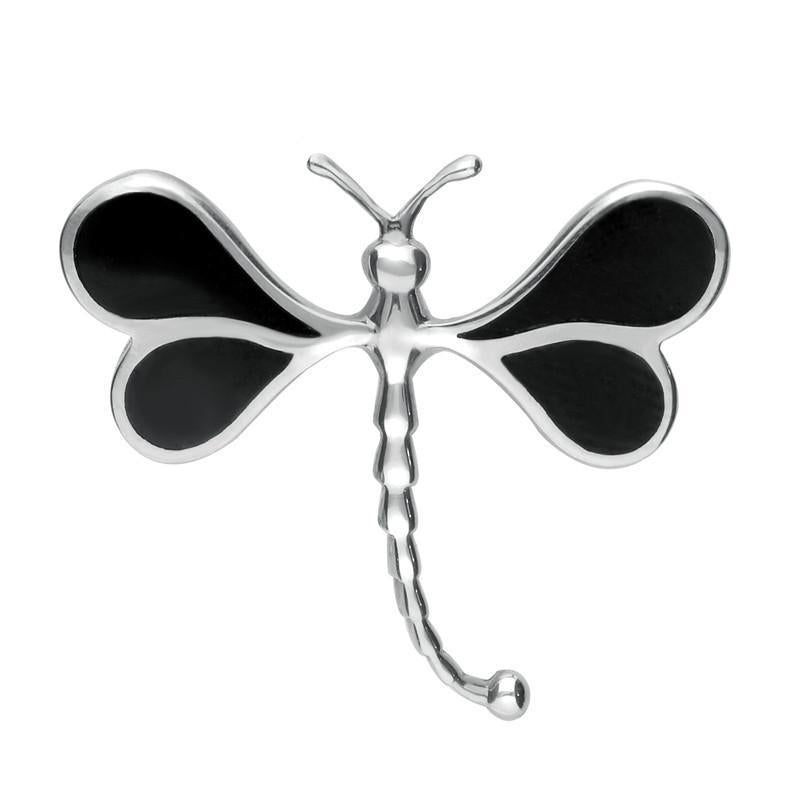Sterling Silver Whitby Jet Dragonfly Brooch D